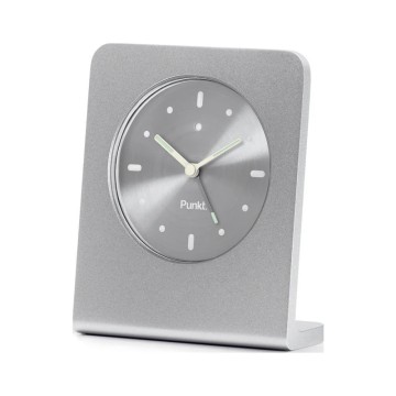 Warum sollte man sein Handy auf dem Nachttisch liegen haben, wenn man sich von einem erhabenen Designobjekt wie dem Punkt. AC 01, entworfen von Jasper Morrison.Kein Fummeln im Dunkeln, keine Strahlungsemissionen und keine unerwünschten Anrufe oder Benachrichtigungen mitten in der Nacht: einfach das Vergnügen, Ihre Schlafstunden einem schlichten, stilvollen Objekt anzuvertrauen, das Sie jedes Mal verzaubert, wenn es Sie aufweckt. Der Stil des AC 01 ist so natürlich wie die tägliche Routine des Schlafens und Aufwachens. Mit nur vier einfachen Handgriffen ist AC 01 einfach und intuitiv zu bedienen und verbindet essentielles Design mit Materialien von dauerhafter Qualität: Das Zifferblatt ist durch dickes, kratzfestes Glas geschützt, während das Gehäuse aus massivem Aluminium besteht. Aktivieren oder deaktivieren Sie den Wecker mit einer einfachen Geste, wobei der Status deutlich auf dem Zifferblatt angezeigt wird. Sie können die Schlummerfunktion auch mit geschlossenen Augen aktivieren, indem Sie einfach auf die Rückseite des Weckers drücken. Um das gesamte Ziffernblatt zu beleuchten, genügt ein leichter Druck auf die Uhr, um den Leuchtring zu aktivieren. Dank der im Dunkeln leuchtenden Zeiger und des Ziffernblatts können Sie die Zeit in völliger Dunkelheit ablesen, ohne den Leuchtring einzuschalten. Eine Batterie für den Wecker und zwei für das Licht sorgen dafür, dass der AC 01 lange Zeit funktioniert, bevor die Batterien ausgetauscht werden müssen.